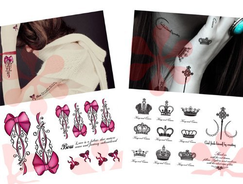 2-packs Christmas Temporary Tattoos, Sexy Finger, Shoulder, Neck, Arm Tattoo - Pink Bows & Crown