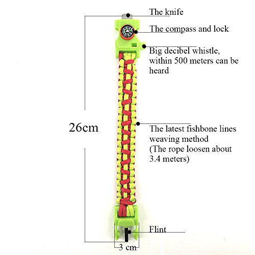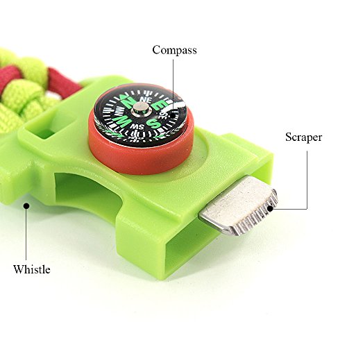 Multifunction-The compass feature provides easy safety for navigation while travelling, so you don't need to worry about getting lost. The built-in whistle can serve as a good helper when you are in emergency, helping you out of danger in time. The wristband can be used as a rope climbing gear when disassemble it(set an animal trap, build camping tent etc).