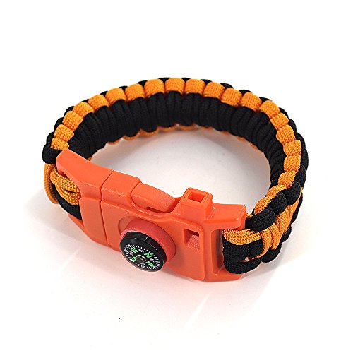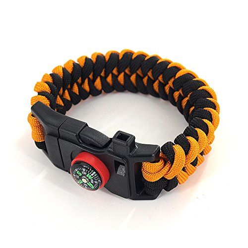 This premium survival paracord is designed in bracelet style with latest centipede lines weaving method. Simply slide to lock or take off. It is idea accessory for camping, hiking, fishing, hunting, boating, and other outdoor activities. The bracelet could be disassembled as rope for making traps, building tents, and in a lot other emergent situations; the scraper works as a fire starter, but also could be used as a knife as well; the add-on compass feature provides easy safety for navigation while travelling; the built-in whistle is clear and loud to be heard from miles away. It would be a great help for outdoor adventure as an emergency life-saving equipment.