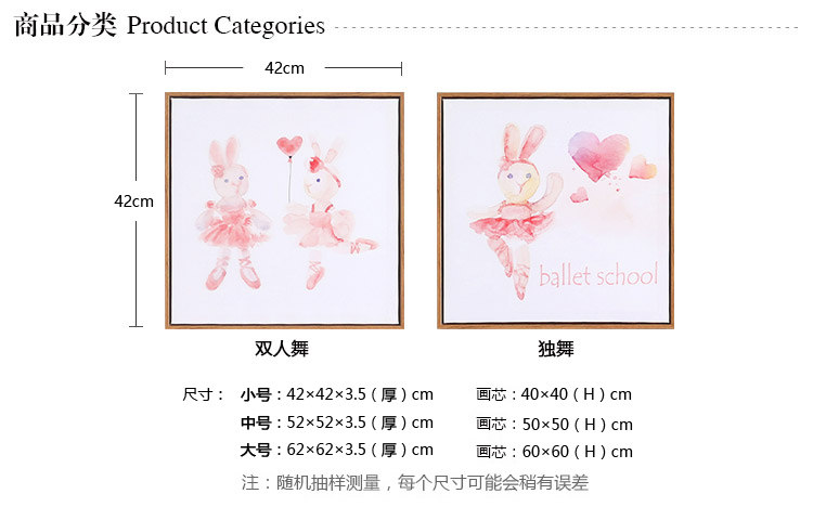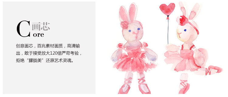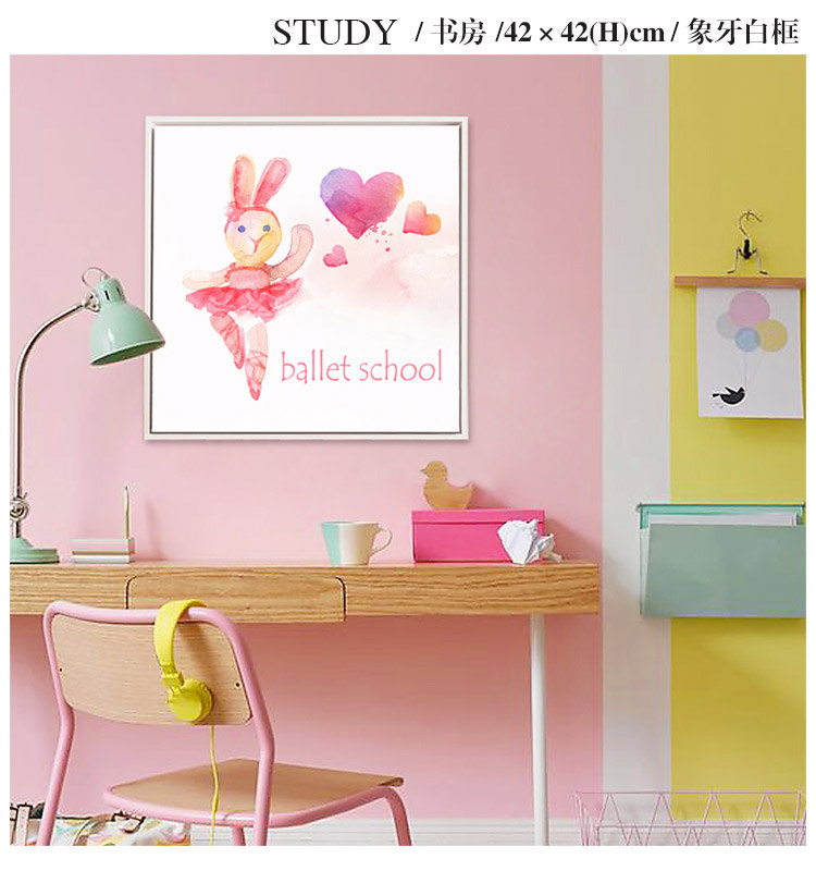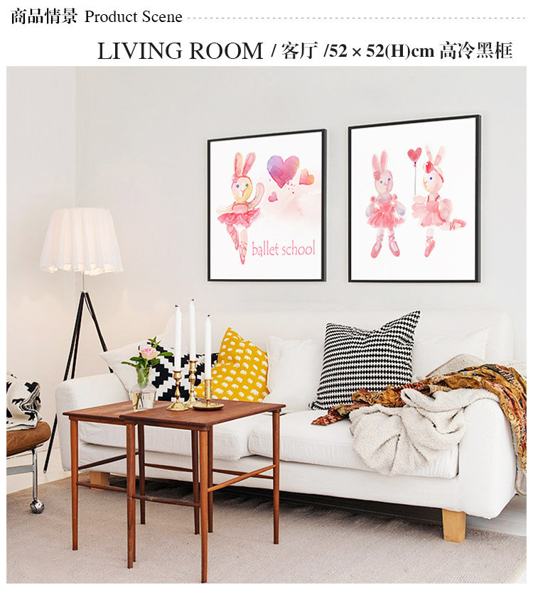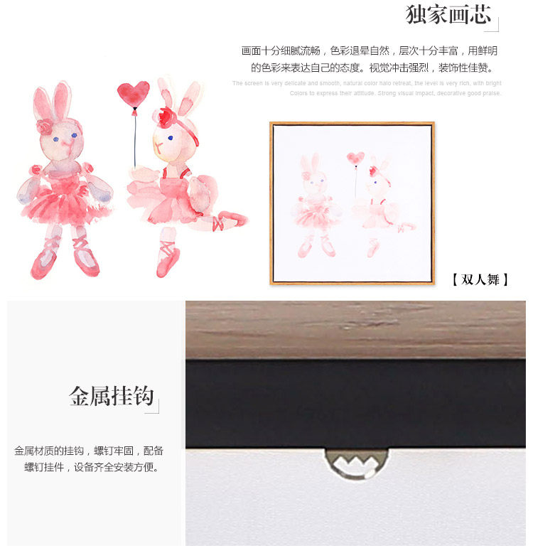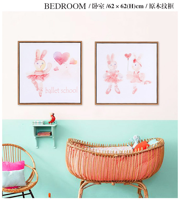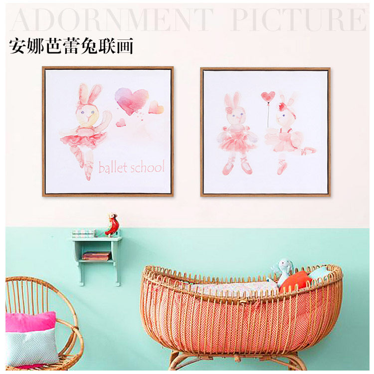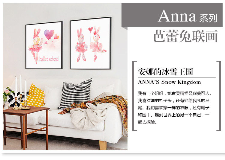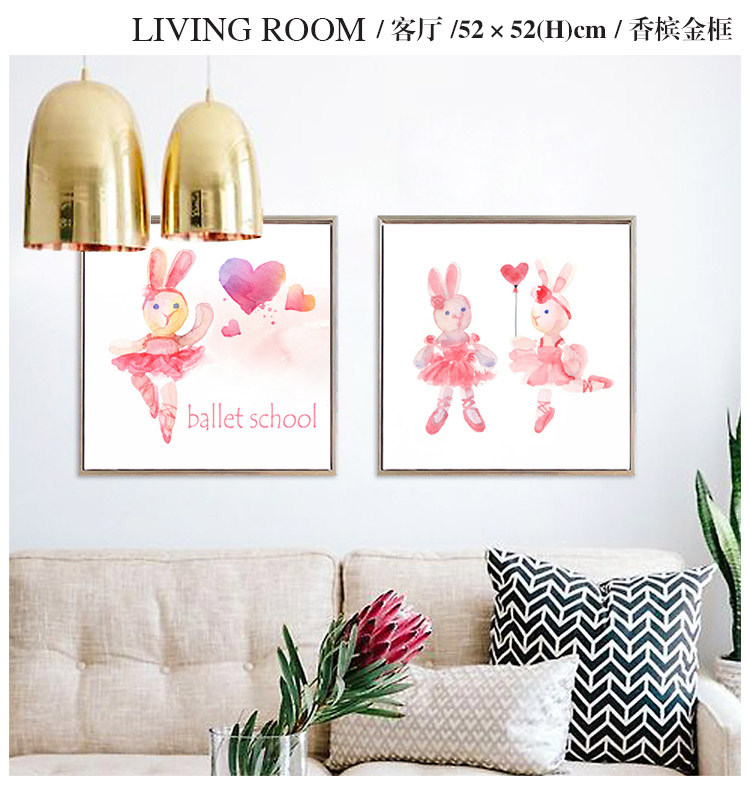 客厅儿童卡通有框双联画 装饰画 壁饰挂画 安娜芭蕾兔装饰画