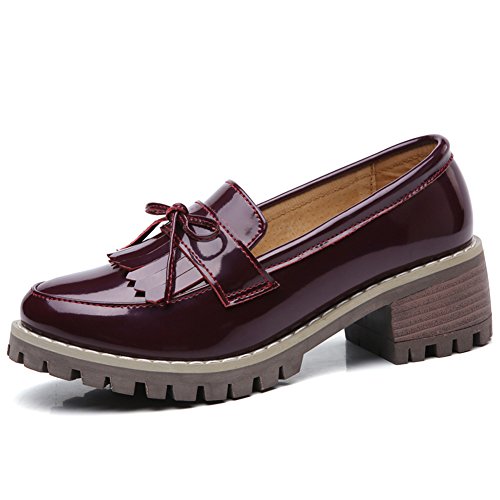 -. Title : HKR Women Slip On Platform Mid Chunky Heel Oxfords Patent Leather Office Dress Work Shoes
