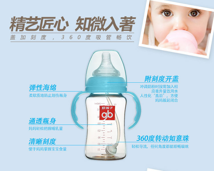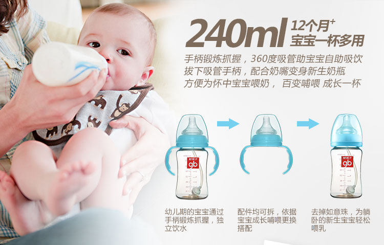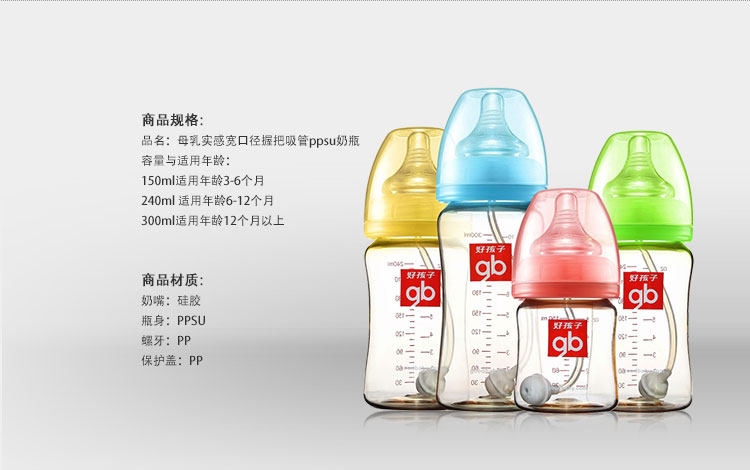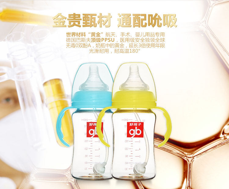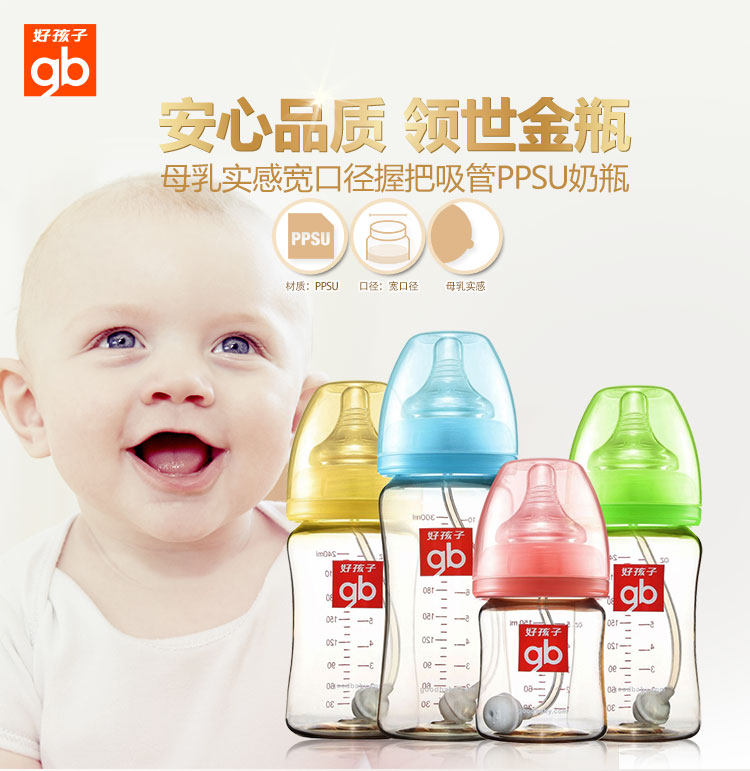 好孩子婴儿奶瓶宽口径240ML防摔防胀气宝宝儿童PPSU母乳实感奶瓶