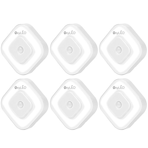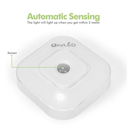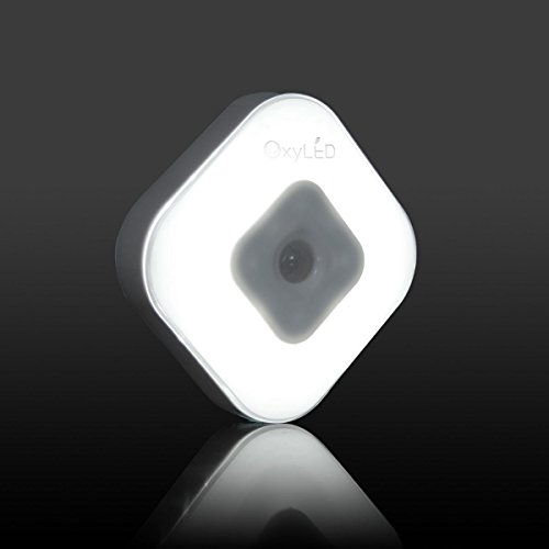 OxyLED - Lights You Can Live By Introducing a light that sets the level on after dark illumination. When it comes to nightlights, OxyLED N08 really is best in class. This pack of 3 motion sensor lamps runs on 3 x AAA batteries and uses highly efficient LED bulbs with 2 functions: constant and auto (activates when movement is detected within 15m and shuts off when no motion has been detected for seconds). The LEDs emit a soft, steady daylight white that is bright enough for early risers to move easily about the house without disturbing anyone who is still sleeping. Minimal power consumption and flat, rounded design mean the N08 fails to add even pennies to your energy bills, does not get hot, and is safe for use around children, pets, and errant sleep walkers.