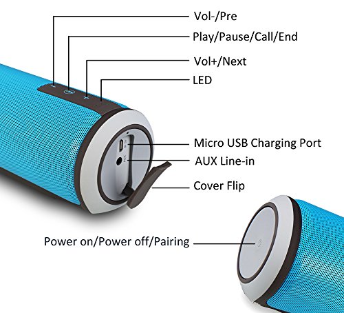 Bluetooth Speaker, Basstyle Universal IPX4 Waterproof Wireless Bluetooth Speaker Speakerphone with Mic, CSR V4.0 Powerful Bass Rich Sound 10 Hours Streaming, Line-in Audio Supported (TB-26S Blue)