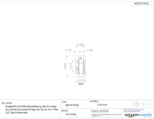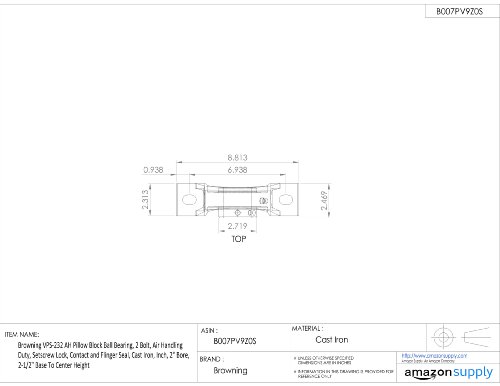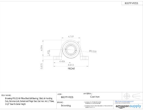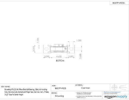 Browning VPS-232 AH Pillow Block Ball Bearing, 2 Bolt, Air Handling Duty, Setscrew Lock, Contact and Flinger Seal, Cast Iron, Inch, 2" Bore, 2-1/2" Base To Center Height