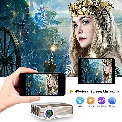 Embrace the Wireless Age: Great Wireless Connection, just wirelessly connect with your smartphone through WI-FI, the small screen displays on the big projection screen, convenient to play videos, music or display photos of your phone, or download apps, watching movies online.