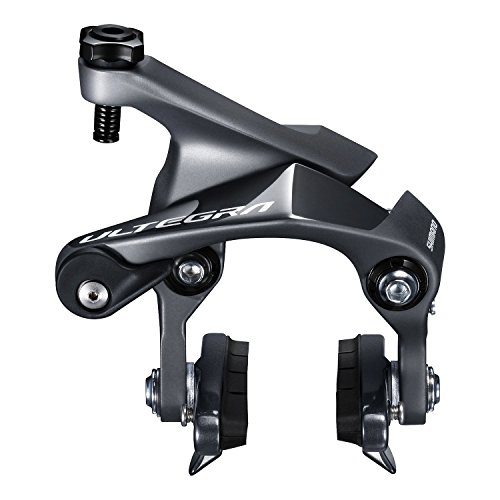 The new Shimano Ultegra BR-R8000 rear brake features trickle down elements from the flagship Dura-Ace line including a sleek design, improved performance, and increased tire clearance (now able to accommodate a 28c width tire). This particular version of the rear brake is the traditional dual-pivot design caliper rim brake. Rear, dual-pivot brake caliper Clear contact feeling with balanced rigidity, weight, and stopping power Sleek design with narrower gap between arms New design features additional stabilizer between brake arms to reduce deformation and improve efficiency More predictable, linear breaking curve Compatible with 28c width tire Weight: 178 gramsFeature