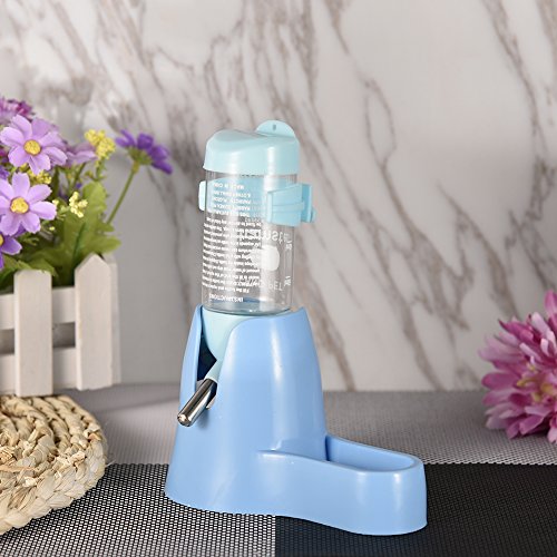 Product Description: The product size is about:8.5cm*14.5cm*15.5cm; The material is made of plastic, and is relatively easy to get cleaned; The whole product is a bit light,so that please place it on a non-slip pad, or put a heavy object inside the bottom to avoid its moving when pets have food and drink water; It is more convenient for you to feed your little pet and save time; Packing list: Small pets water container * 1 80 ml drinking bottle * 1 0
