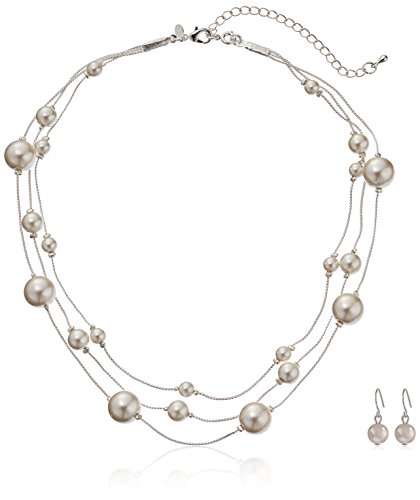 -. Binding : Jewelry -. Brand : Amazon Collection -. Color : off-white -. Department : women -. Feature : Two-piece set includes three-strand necklace with simulated pearl stations and drop earrings of single pearl in coordinating color / Necklace has 16" chain with lobster-claw clasp and 3" extender / Earrings have fishhook back finding / Imported -. Label : Amazon Curated Collection -. Manufacturer : Amazon Curated Collection -. Model : 2245830-Parent -. MPN : 2245830-Parent -. PartNumber : 2245830-Parent -. ProductGroup : Jewelry -. ProductTypeName : FINEOTHER -. Publisher : Amazon Curated Collection -. Studio : Amazon Curated Collection -. Title : Colored Simulated Pearl Illusion Chain Earrings and Necklace Set