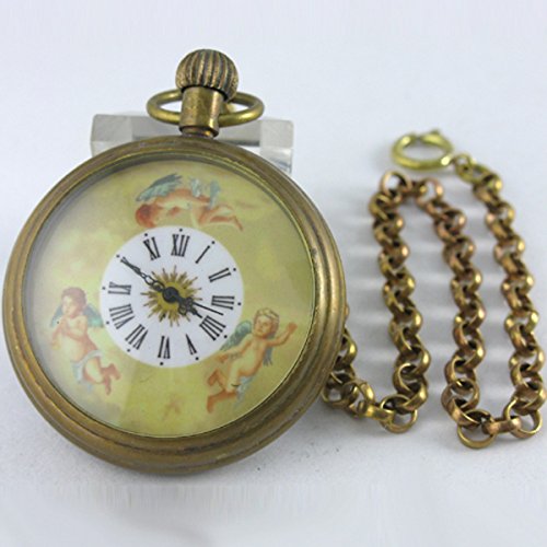 -. Title : VIGOROSO Men's Antique Retro Pure Copper 3 Angels Steampunk Mechanical Hand-winding Pocket Watch