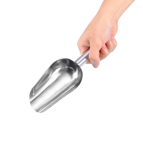 - Color: As shown. - Material: Stainless steel. - Size: About 23.5 x 8 x 4cm/9 x 3 x 1.6in. - Made of stainless steel, durable easy to clean. - It's quite easy to shovel down and come up with a full scoop of food pellets without much efforts. About 205g pet food per shovel. - Ideal for scooping Candies, Pet Food, Nuts, Flour, Popcorn, Cooking Ingredients, Coffee Beans and more.