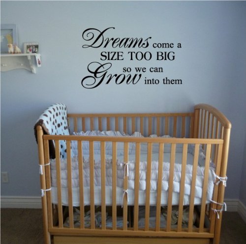 - Title : Dreams come a size too big so we can grow into them 20"h X 32"w Vinyl Lettering Art Wall Sayings Décor Word Decal Quote