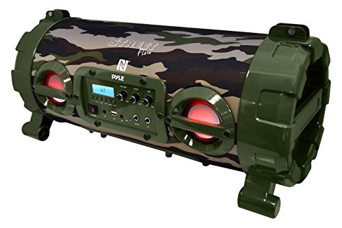 -. Title : Pyle Street Blaster Wireless Bluetooth Boom Box Speaker, Built-in Rechargeable Battery, MP3/USB/SD, FM Radio, DJ Lights,Camouflage (PBMSPG120CM)