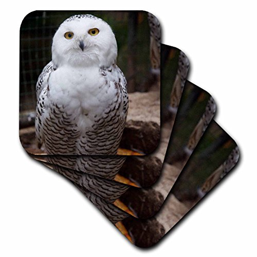 3dRose cst_79143_3 Pretty White Snowy Owl- Birds- Animals Ceramic Tile Coasters, (Set of 4)