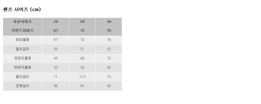 | 사이즈 | 67(26),72(28),76(30) |