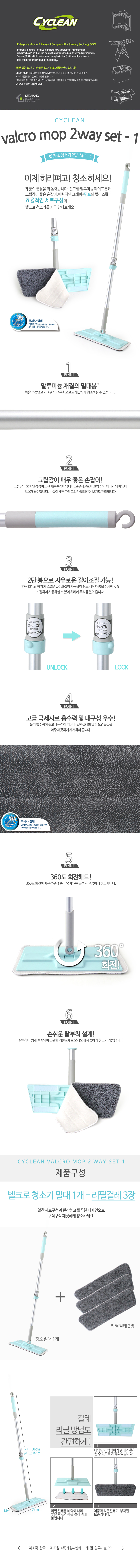 상품명 : 싸이크린 벨크로 청소기 2단 세트1 (밀대+벨크로맙3장)