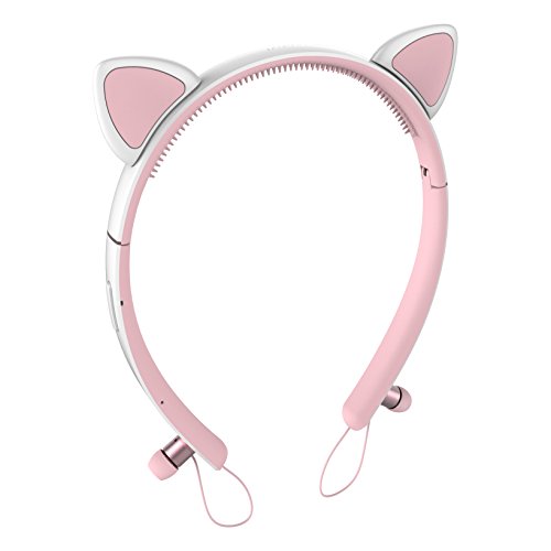 -. Title : MongDa おしゃれ猫耳ヘッドホン ブルートゥース 耳脱着可能 APTX対応 CVC6.0ノイズ防止 折りたたみ型 ハンズフリー通話 カチューシャ 鏡付ケース ピンク+白