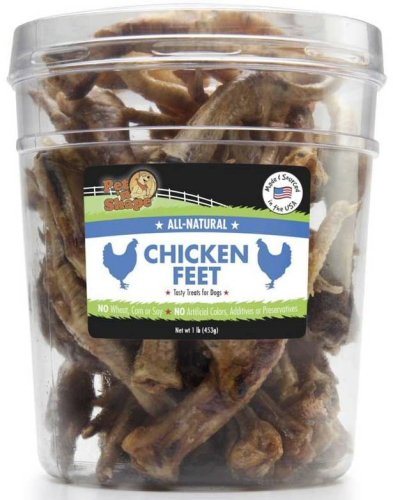 -. Feature : Crunchy and entirely edible chicken feet treat for dogs / Ideal as a training tool or reward; helpful for keeping your dog's teeth clean / Completely digestible, carefully roasted to ensure optimal quality and flavor / All natural with no preservatives, additives, or artificial colors; free of wheat, corn, and soy / Made and sourced in the USA from free range, grass fed chicken