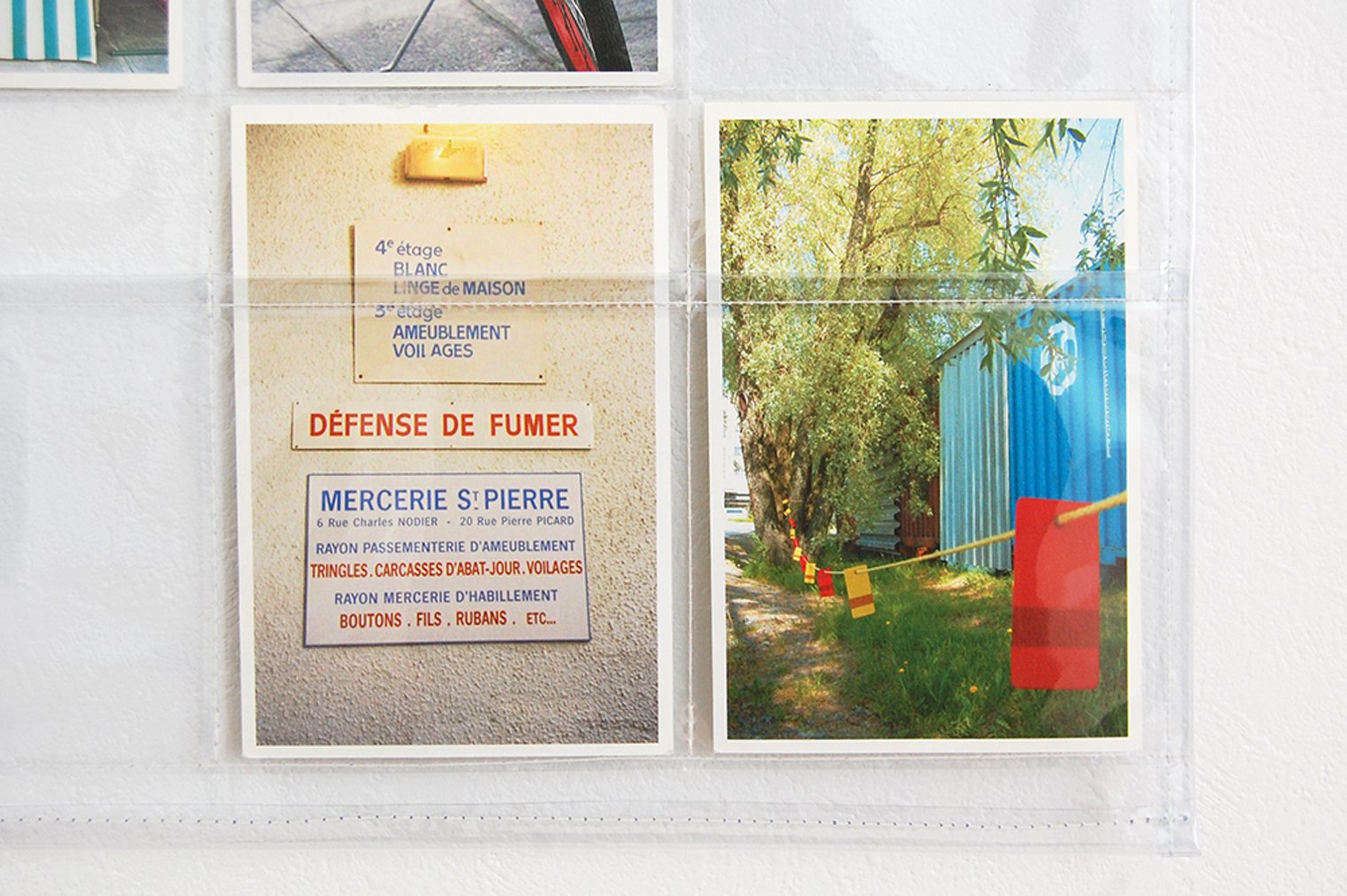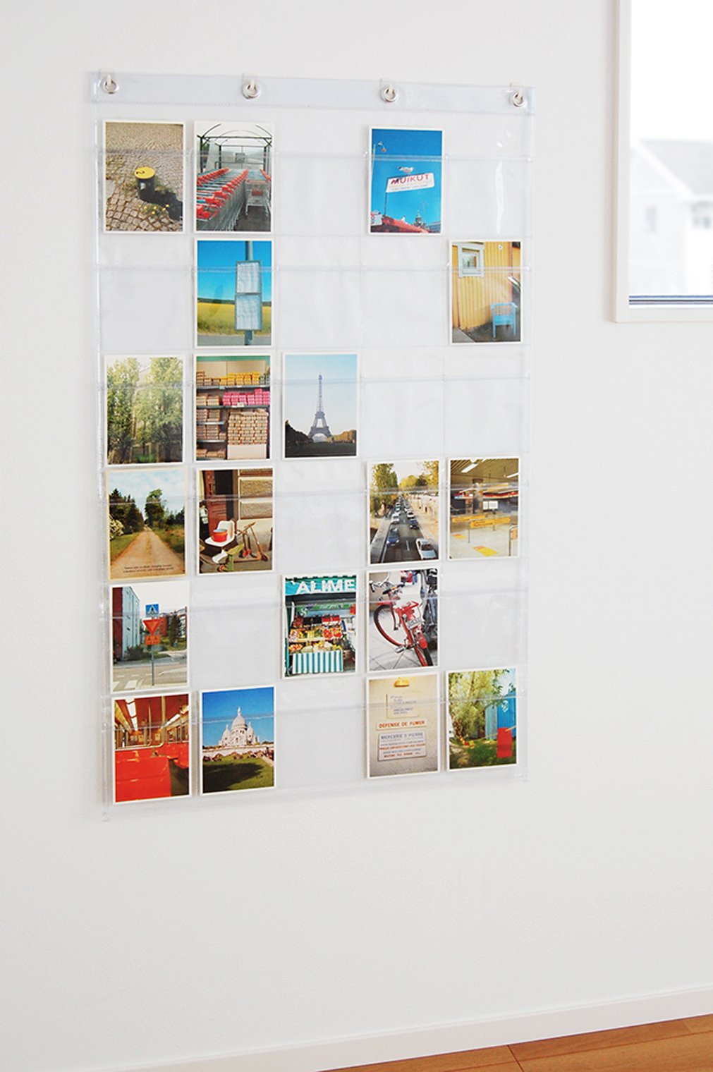 Wall pocket with 30 vertically oriented postcards