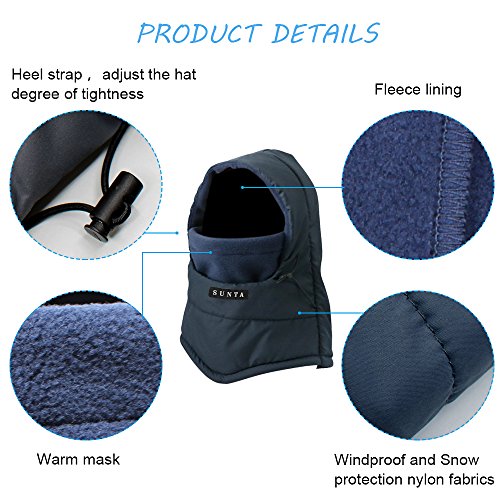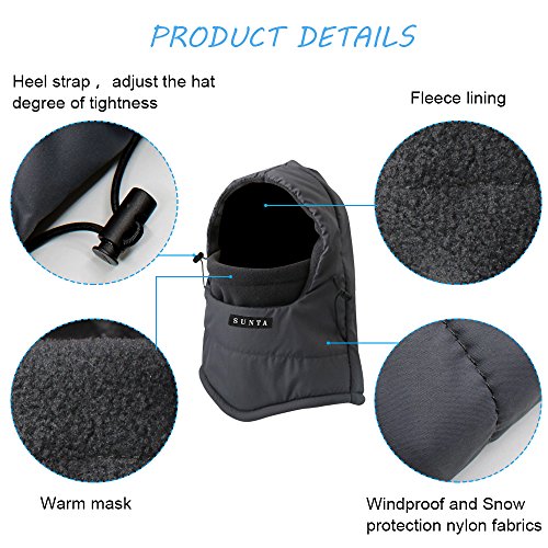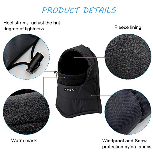 Studio : SUNTA Publisher : SUNTA Product Description Winter Sports Essential- For Those Who Take the Cold weather Seriously, It Is Necessary to Get This Windproof Cap. High-Class Fabric- SUNTA Fleece Hood is Breathability, Durability, Wicking, Abrasion Resistance and Anti-Static Function. Improved Design- Double Layers Thicken, Longer Neck Design and Different Sewing Angle to Protect Your Neck and Face From the Cold Wind. Multifunction- Great for Winter Outer Sports Such Like Motorcycling, Biking, Snowboarding, Hunting, Skiing, Snowboarding, Camping etc. Suitable for Gifts- SUNTA Heavyweight Balaclava Perfect Fit for Women, Men and Children, Great for Halloween, Thanksgiving, Christmas, New Year Gifts. 0