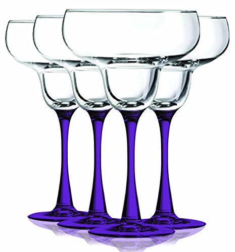 (TableTop King)/Kitchen Dining/Bar Tools Glasses/DIRECT FROM USA/Purple Margarita Glasses with Beautiful Colored Stem Accent - 14.5 oz. set of 4- Additional Vib...