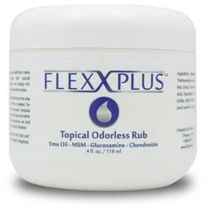 Studio : Uniquely Emu Products, Inc. Publisher : Uniquely Emu Products, Inc. Binding : Health and Beauty Product Description FLEXXPLUS is a topical odorless rub that offers fast temporary relief from many kinds of body discomforts without the undesirable side effects of drugs. Enhanced with natural anti-inflammatory substances, antioxidants, and omega rich emu oil. Use to help loosen still joints and ease sore muscles. This formula does not contain unnecessary dyes that may stain the skin. It will not have a medicinal smell so those around won't even know you're using it. 0