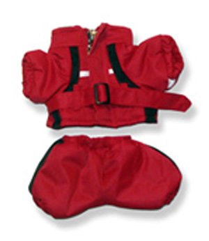 -. Feature : Teddy bear snowsuit / red outfit trimmed in black / fits 8 inch plush / 2 piece outfit