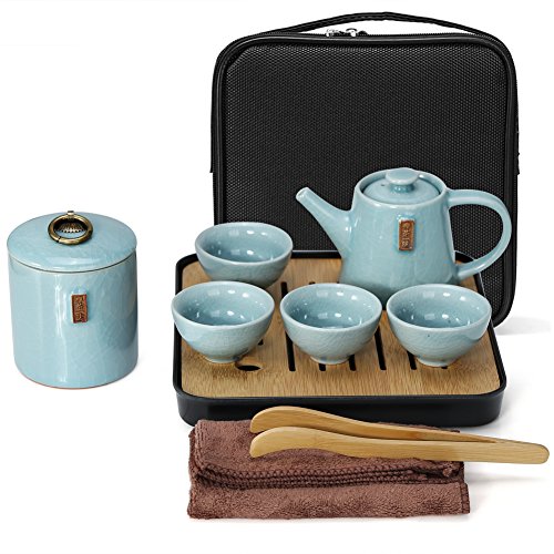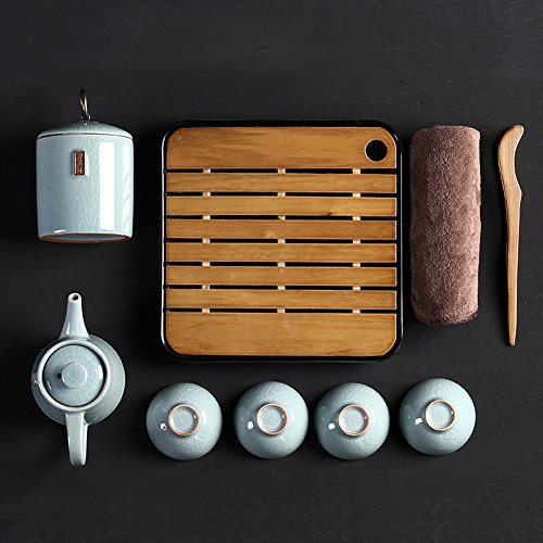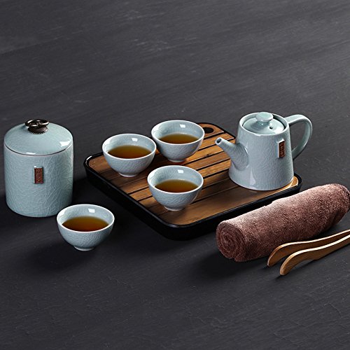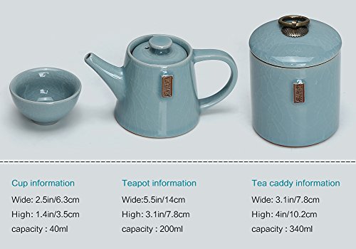 Specifications: Material: Ge kiln( a kind of ceramic) Surface processing: Ge kiln cracked glaze Packing: travel bag Teapot capacity: 200ml/7oz Package included: 1* Teapot 4* Teacups 1* Tea canister 1* Tea tray 1* Tea clip 1* Towel