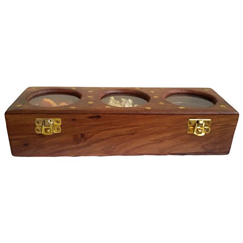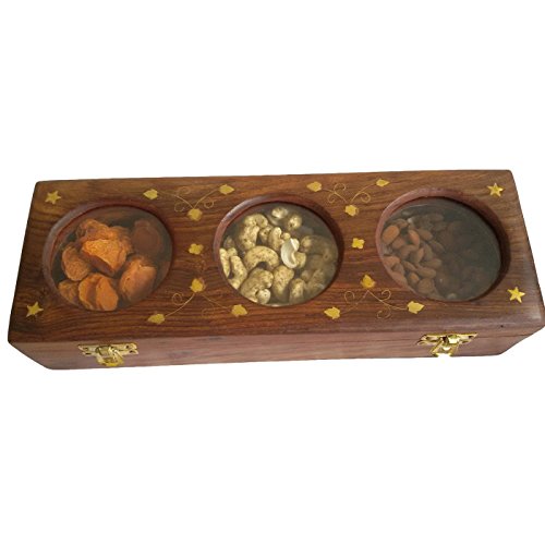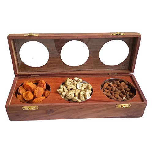 Onlineshoppee Wooden Dry Fruit Box with 3 Steel Bowls
