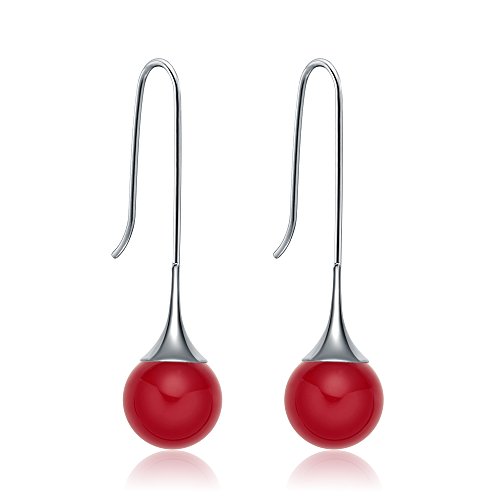 -. Title : TICENTRAL レディース フック ピアス ステンレス316L ティアドロップ 揺れる 大人可愛い シンプル 瑪瑙 メノウ ストーン ボール イヤリング ファッション ジュエリー (レッド)