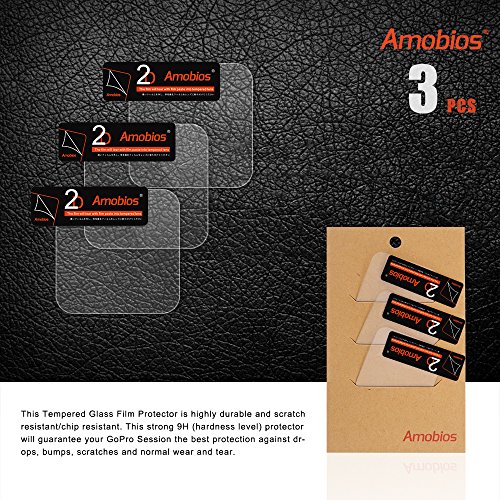 Amobios High Quality Scratch-resistant Tempered Glass Screen Protector Lens Film Accessory Kit For GoPro Hero4 session Product Description This Tempered Glass Film Protector is highly durable and scratch resistant/chip resistant. This strong 9H (hardness level) protector will guarantee your GoPro Session the best protection against drops, bumps, scratches and normal wear and tear. Get all the protection without any bulk - Film Glass protectors are a mere 0.33mm thin making them ultra-light weight. To top it all off the film glass protectors are designed to be 98% transparent to promote an optimal, natural, crystal clear viewing experience