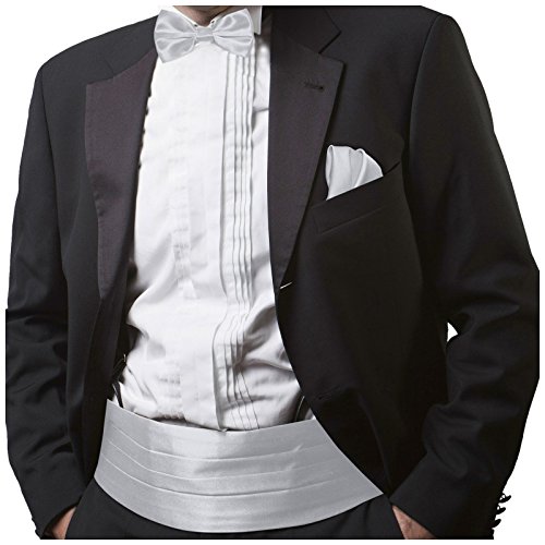 -. Title : GASSANI Light Silver gray Men's Shiny Satin Cummerbund, Pretied Bow Tie & Hanky