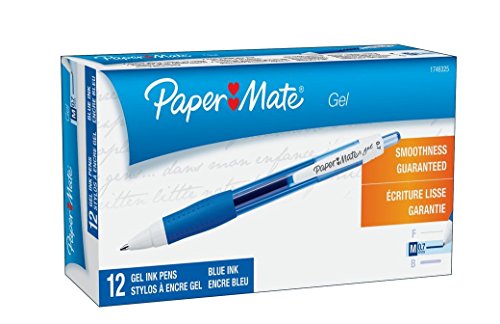 -. Title : Paper Mate Retractable Gel Pens, Medium Point, Blue, Box of 12