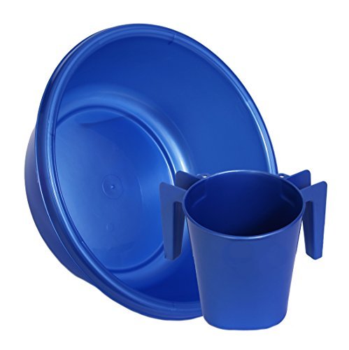 YBM Home Square Wash Cup & Round Wash Basin Netilat Yadayim, Negel Vasser Set Ba154-1147set (1, Blue)