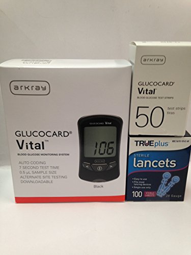 -. Title : Arkray Glucocard Vital Meter Kit + 50 Blood Glucose Test Strips + 100 TRUEplus 28 Gauge Lancets