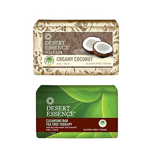 Desert Essence Tea Tree Therapy Cleansing Bar and Creamy Coconut Soap Bar Bundle - 5 oz