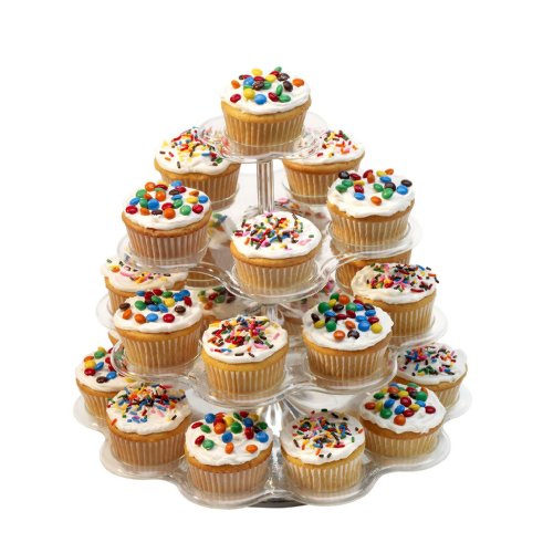 - 4-Tier cupcake stacker beautifully displays up to 24 personal-size treats