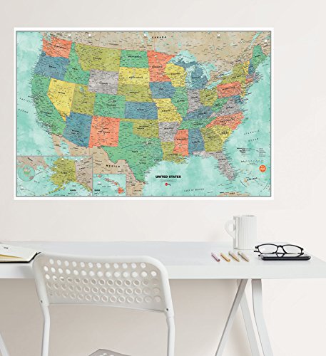 Wall Pops WPE1762 Aquarelle Us Dry Erase Map