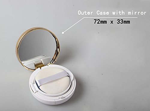 1PCS 15ML Air Cushion Powder Puff Box-DIY BB CC Cream Storage Containers Makeup Box Case with Powder Puff Sponge and Mirror (White+Golden)