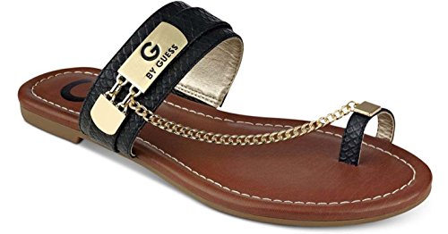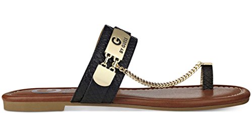 Binding : Apparel Product Description Synthetic Rubber sole Women's G by Guess, Limitt Sandal Spice up your look with these hot sandals! Manmade upper with braid, chain and logo accent for added appeal Slide on style for an easy on and off Smooth manmade lining 0