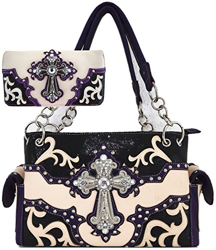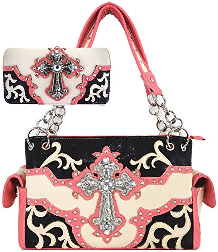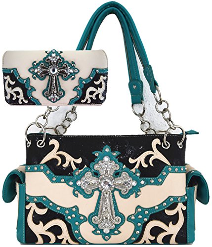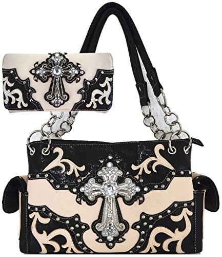 Product Description Western Cowgirl Classic Shoulder Bag With Wallet Set [Interior: Top Zipper Closure, Interior Middle Zipper, Divider Pocket with Multiple Interior Size Pockets and Flap Magnetic Closure. Exterior: Back Phone Slot with Zipper Concealed Carry Pocket 0