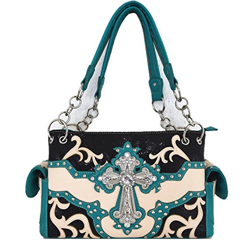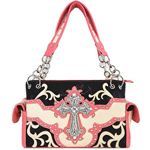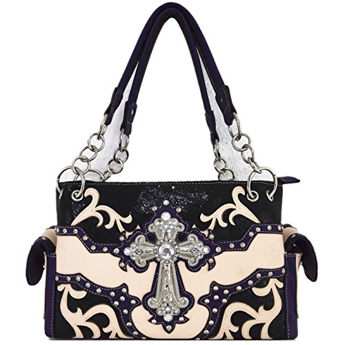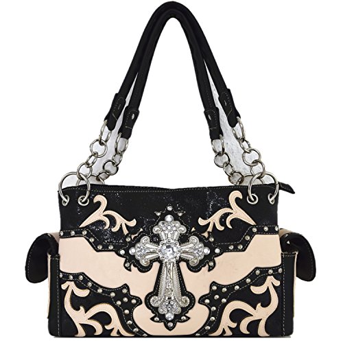 (Western)/Accessories/Handbags/DIRECT FROM USA/Rhinestone Cross Studded Laser Cut Floral Western Country Handbags Women Purses Shoulder Bag Wa...