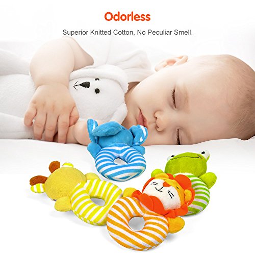 Ideal size for baby to hold.Colorful animal plush rattles are suitable as a Newborn Toys,Infant Toys,Baby Toys 0-3 months,Baby Toys 3-6 months,Baby Toys 6-12 months,Baby toddler Toys,baby Toys 1 year.