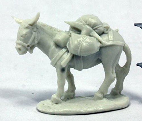 Studio : Reaper Miniatures Publisher : Reaper Miniatures Binding : Toy Product Description RPR77402 Pack Donkey Miniature 25mm Heroic Scale Bones Reaper Miniatures Reapers Bones meet that sweet spot where low price intersects with incredible detail. All the fiddly bits you love to paint are there at prices that will astound you. Out of the box, these incredible figures take paint without priming. Reapers Master Series Paints cover these models perfectly right out of the bottle, and the paint sticks - standing up to most sorts of tabletop abuse your Friday night group would be able to dish out. Bones polymer material reacts beautifully with cyanoacrylate adhesives. - 25mm Heroic Scale Fantasy Miniatures - Integral Bases - Unpainted polymer models - Miniatures are supplied unpainted and assembly may be required. Note: You may find that sometimes the thinner parts on Bones, like spears and swords, will look a little bent. Or the figure might be leaning back or forward too much on its ankles. If you want to straighten those out, hold the figure with tongs or in a colander, and dip it into boiling or near boiling water for at least a minute or two. Remove it from the water, reposition the part, and immediately dunk it into a bowl of ice water for at least a minute. It should hold in the new position. Important safety notes: Please exercise caution! The Bones material may get hot when dipped in boiling water 0