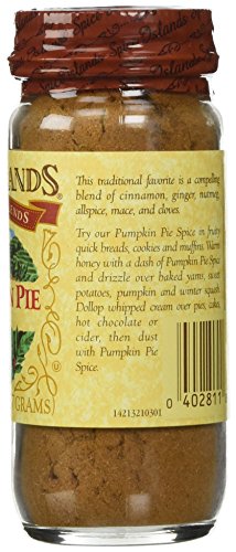 -. Binding : Misc. -. Brand : Island Spice -. EAN : 0040100002818 -. Feature : Spice Island Pumpkin Pie Spice 2 OZ -. Label : Spice Island -. LegalDisclaimer : Packaging may differ from image. IN NO EVENT, REGARDLESS OF CAUSE, SHALL COMPANY (SMARTSHOPPER101) BE LIABLE FOR ANY INDIRECT, SPECIAL, INCIDENTAL, PUNITIVE OR CONSEQUENTIAL DAMAGES OF ANY KIND, WHETHER ARISING UNDER BREACH OF CONTRACT, TORT (INCLUDING NEGLIGENCE), STRICT LIABILITY OR OTHERWISE, AND WHETHER BASED ON THIS AGREEMENT OR OTHERWISE, EVEN IF ADVISED OF THE POSSIBILITY OF SUCH DAMAGES. (Note: This Product Description Is Informational Only. Always Check The Actual Product Label In Your Possession For The Most Accurate Ingredient Information Before Use. For Any Health Or Dietary Related Matter Always Consult Your Doctor Before Use.) -. Manufacturer : Spice Island -. PackageQuantity : 1 -. ProductGroup : Grocery -. ProductTypeName : GROCERY -. Publisher : Spice Island -. Size : 2 Ounces -. Studio : Spice Island -. Title : Spice Island Pumpkin Pie Spice 2 OZ -. UPC : 040100002818