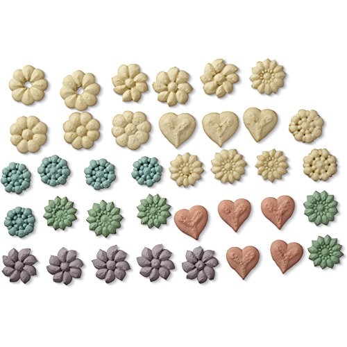 - Includes 12 cookie discs: Christmas tree, wreath, snowman, pumpkin, turkey, dots, doily, pinwheel, heart, starburst, sunburst and biscuit