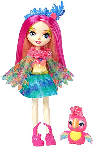 -. Feature : This adorable 6" doll and her animal friend are inspired by the world of Enchantimals, a fantastical place nestled in nature / Peeking parrot doll comes with sheeny parrot friend figure -- so cute with colorful wings and a furry patch of pink hair! / The Enchantimals doll wears a colorful outfit with a yellow bodice, blue and green removable skirt and a floral print on a sheer cape with a pink furry collar. / Fun touches highlight her character, like parrot wings on her pink shoes, colorful facial features and a blue feather-inspired hairpiece that looks beautiful against her rooted pink and blonde hair / Play out all kinds of enchanting stories with these enchanted friends, and collect them all to build out a world of Enchantimals (each sold separately, subject to availability).