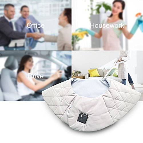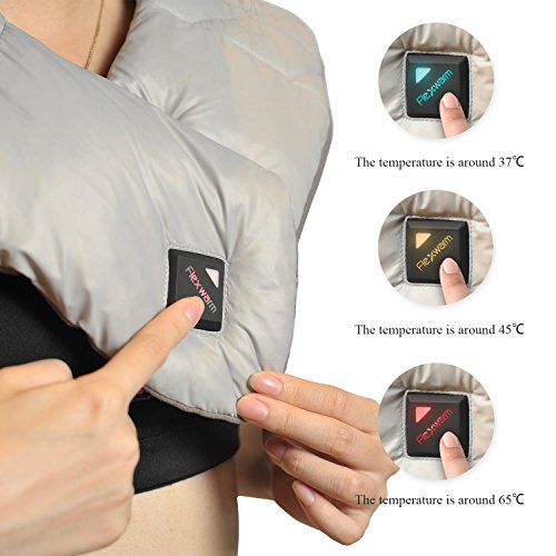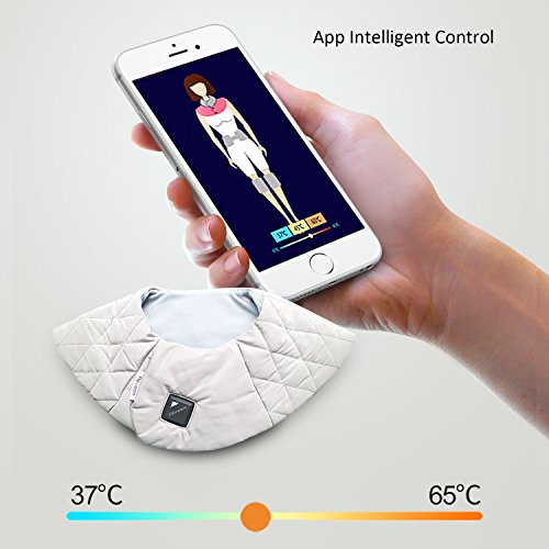 Feature: App Intelligent Control: Connect with your smartphone or tablet via Bluetooth, App can exact control to 1℃. Far Infrared: Built with heat therapy pad inside, deep heating and infrared penetration, effectively improve blood circulation and relieve pain. Washable and Foldable: Adopt high density waterproof fabric cover. Portable: Come with USB cable, the shoulder wrap could be charged with portable power bank; wherever you may be, you can relief you shoulder pain. Heat up in seconds and maintains consistent heat to provide fast pain relief to sore, aching muscles. The heating pad can comfort to the neck, shoulders and upper back area, soothe away tension and help ease away pain, also great for staying warm and cozy during a cold winter. 3 Heat Settings: The first gear (blue light), the temperature is around 37℃/98.6℉; The second gear (yellow light), the temperature is around 45℃/113℉; The third gear (red light), the temperature is around 65℃/149℉. Gently tap to change the heating level, staying warm and cozy during a cold winter. You also can connect with your smartphone or tablet via Bluetooth, adjust the temperature freely to accommodate your comfort level.