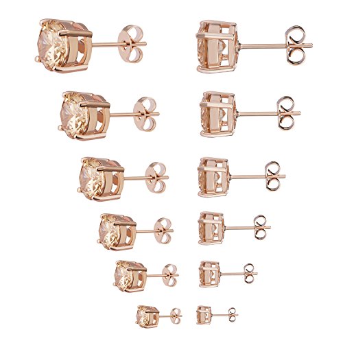 Womens Stud Earrings Stainless Steel 6 Pairs Set,Rose Gold Tone Yellow Crystal Cubic Zirconia (3mm-8mm)