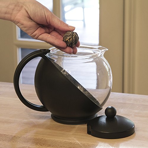 -. Title : Primula Flowering Tea Set with Half-Moon 40-Ounce Pot, Black/Glass